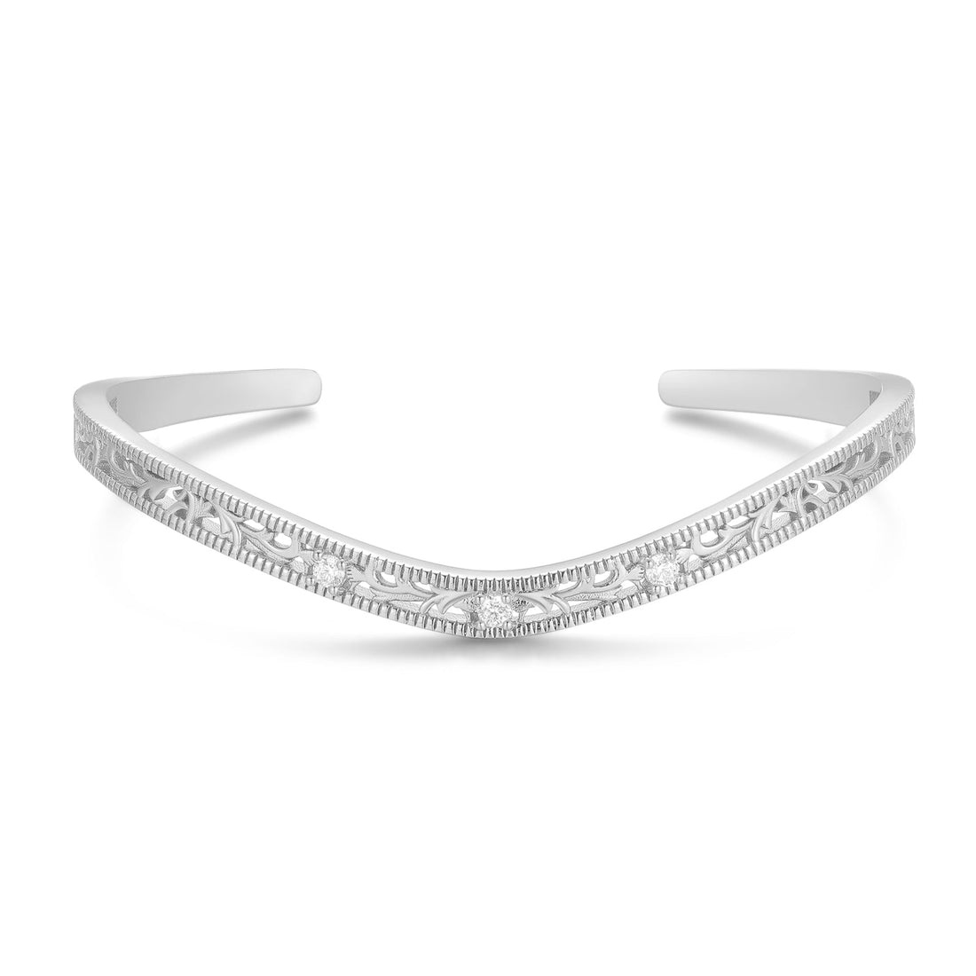 Experience the ethereal elegance of this bangle, embellished with a refined floral cut-out design, as...