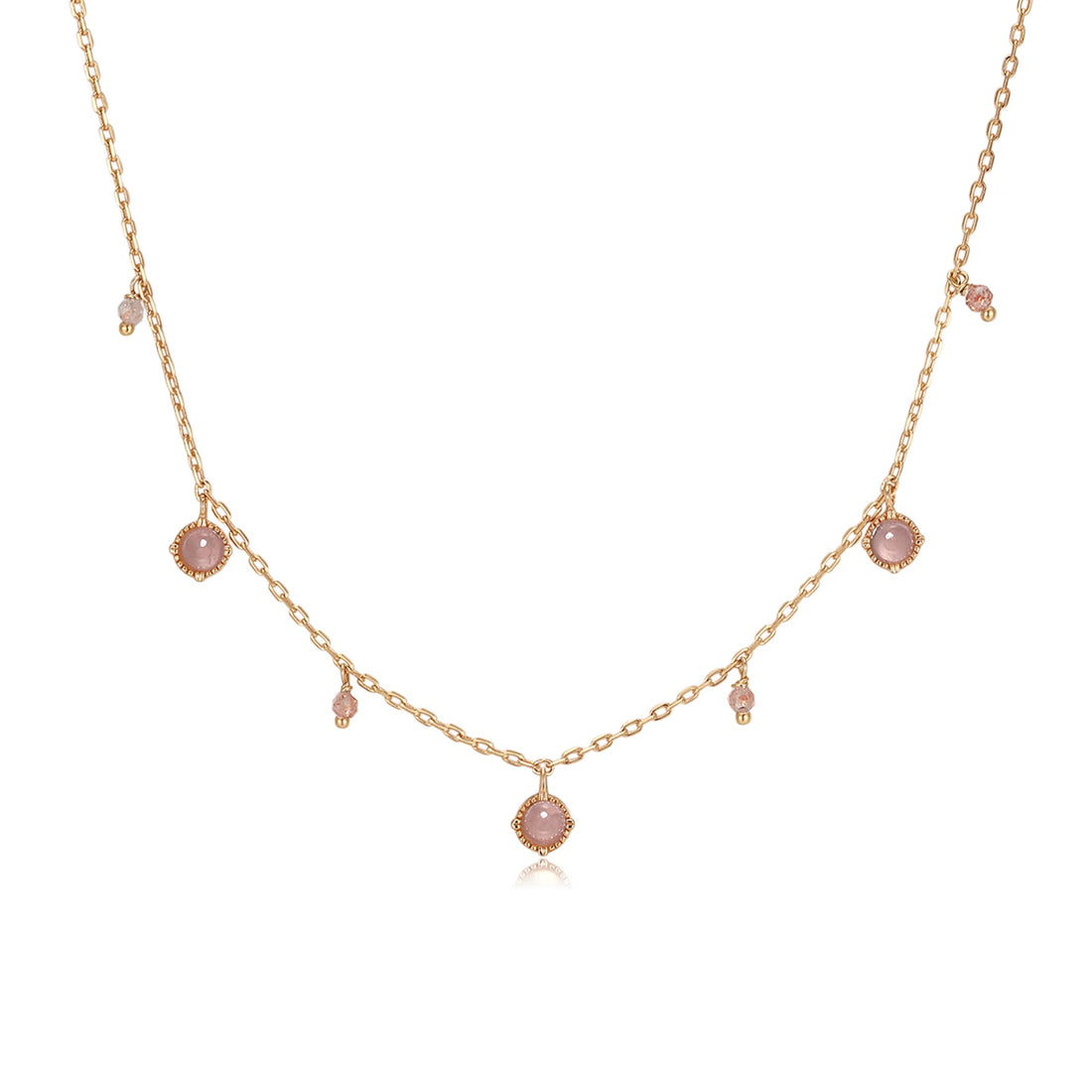 Strawberry Quartz & Rose Quartz Gold Dangle Choker