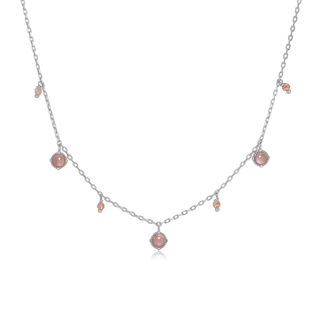 Strawberry Quartz & Rose Quartz Silver Dangle Choker