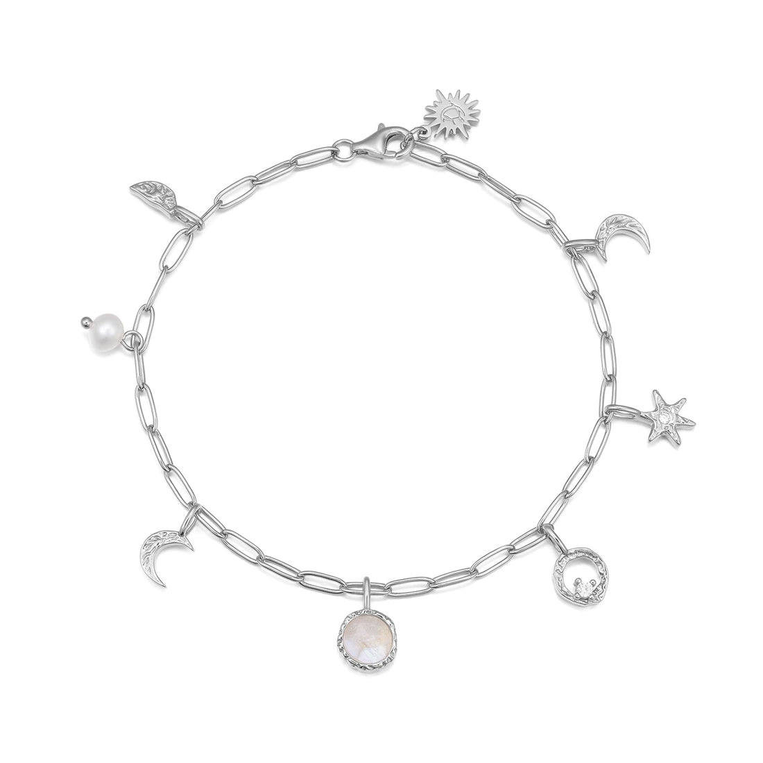 Moonstone & Freshwater Pearl Silver Link Bracelet - Moonlight