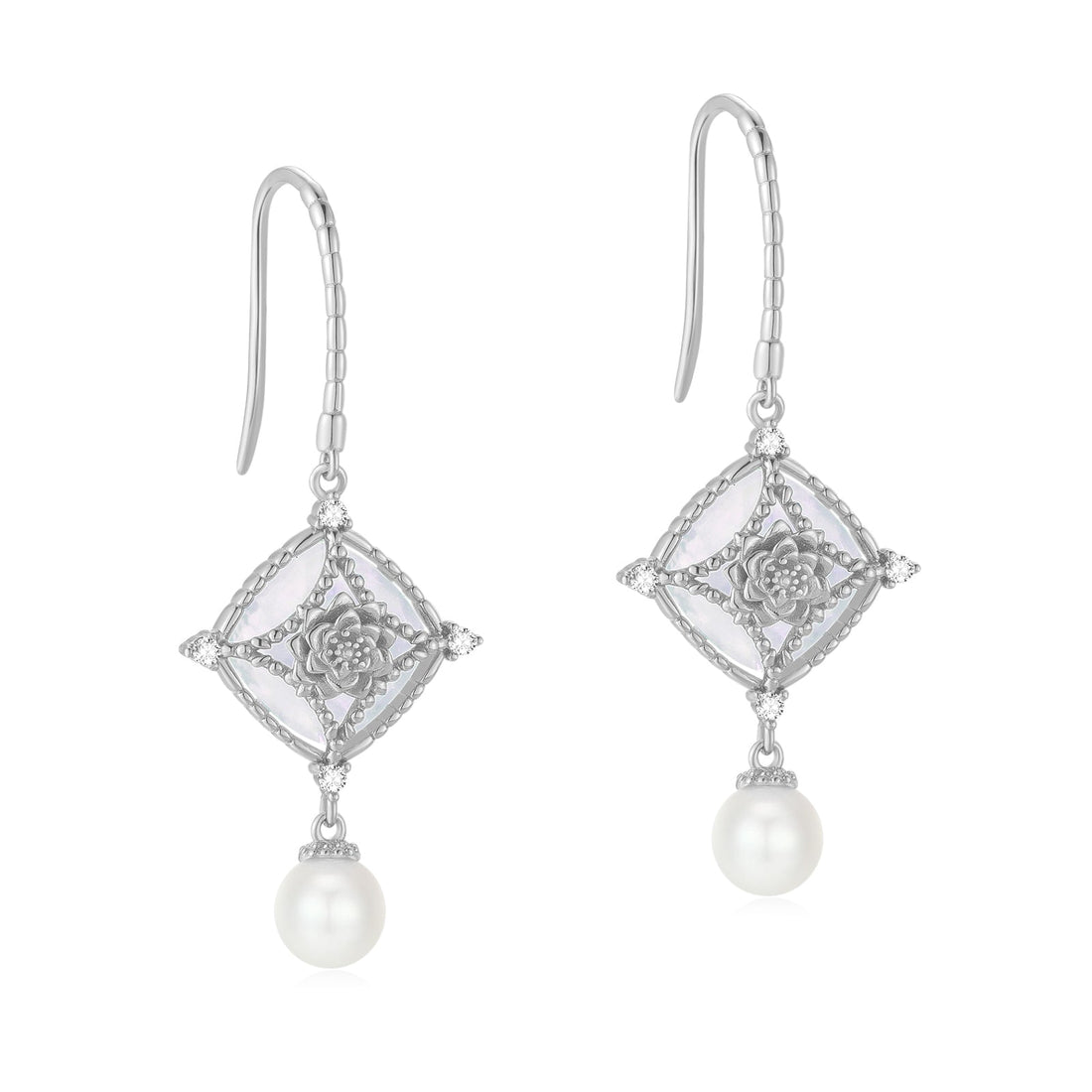 Moonstone & Freshwater Pearl Silver Earrings - Water Lily
