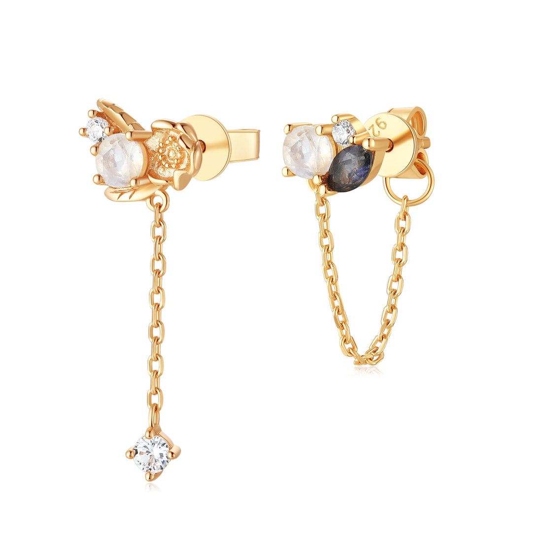 Moonstone & Iolite Gold Earrings - Poppy