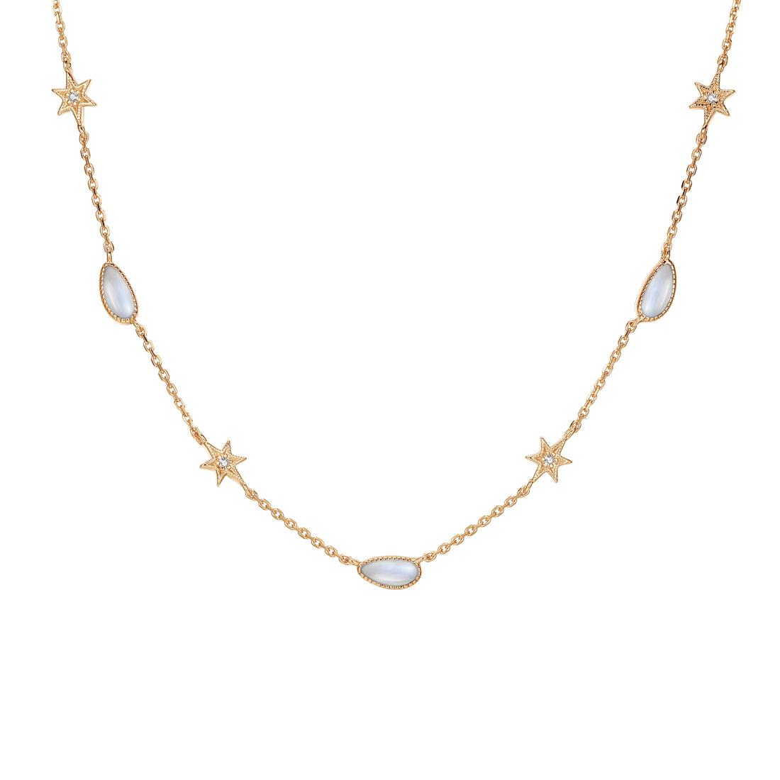 Embrace the enchanting allure of our star choker featuring luminous moonstones and sparkling stars, the...