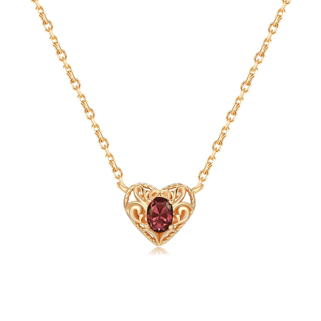 Garnet Gold Heart Link Chain Necklace - Majesty