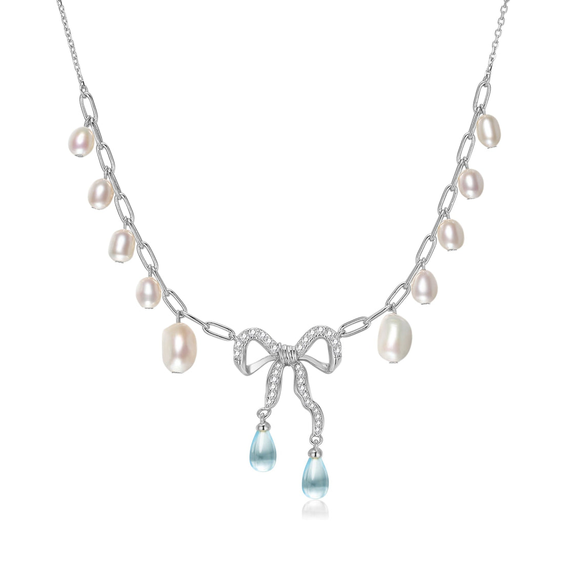 Blue Topaz & Pearl Silver Bow Dangle Necklace - Alice