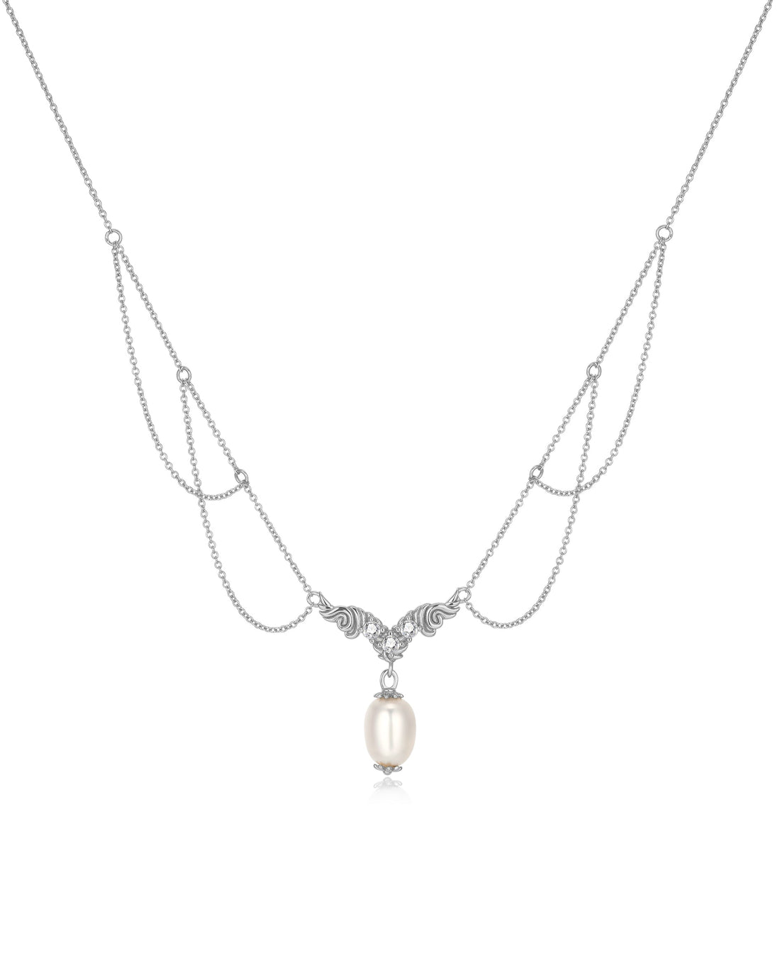 Freshwater Pearl Silver Festoon Necklace - Ophelia