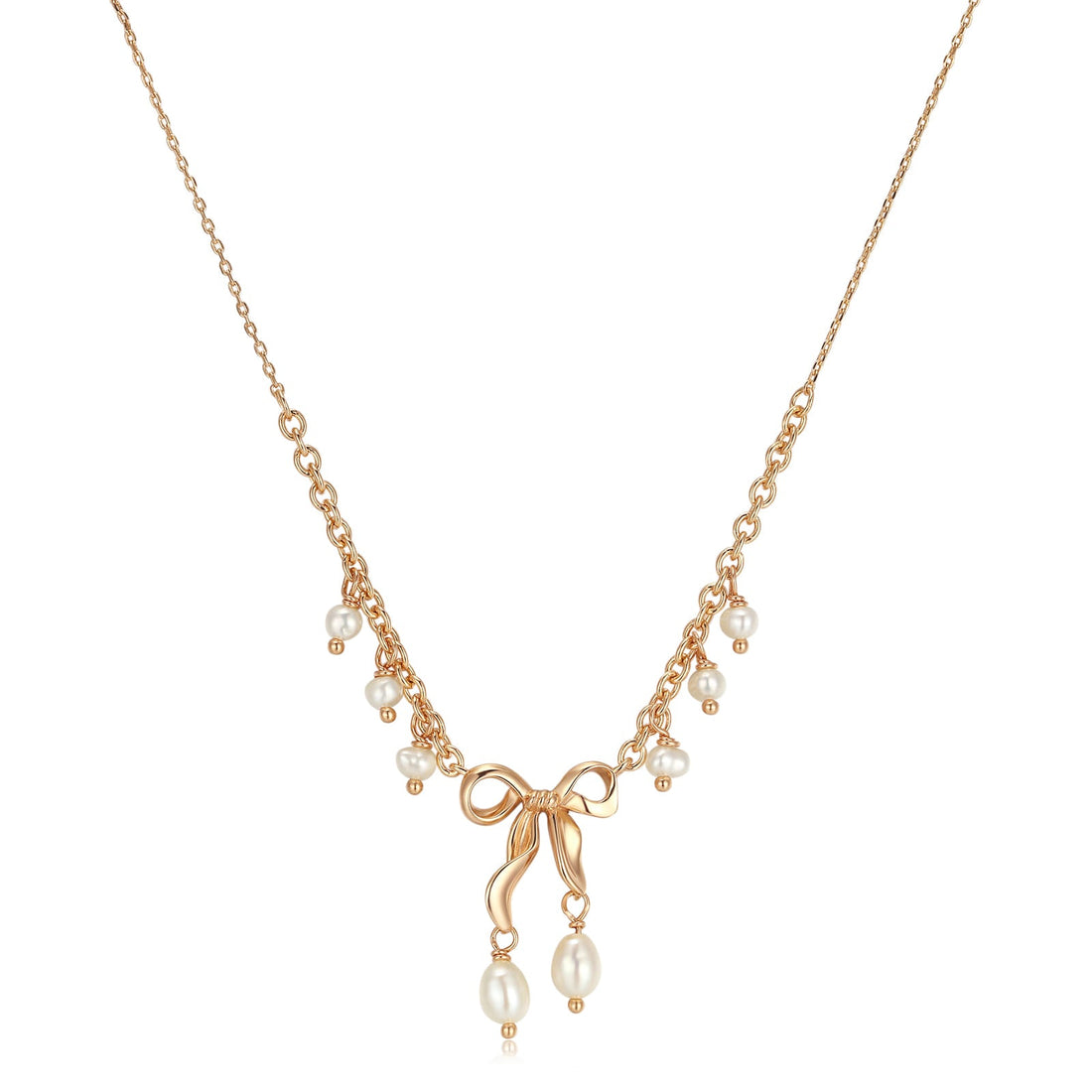 Freshwater Pearl Gold Bow Dangle Necklace - Alice