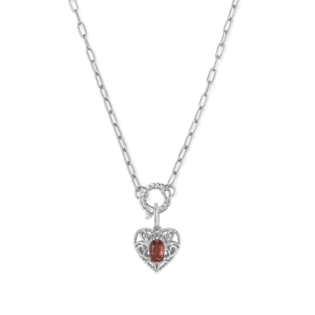 Garnet Silver Heart Link Chain Necklace - Majesty