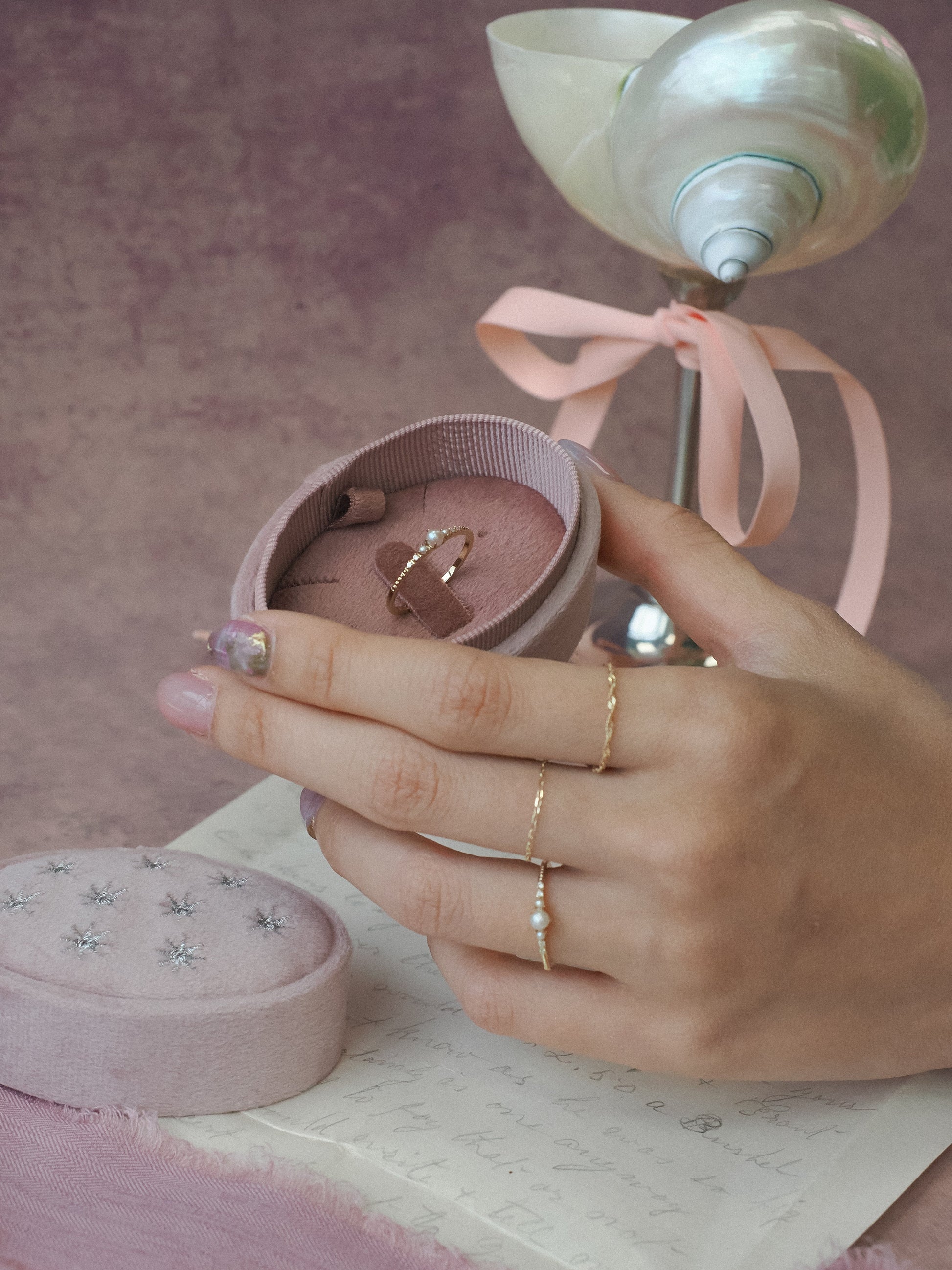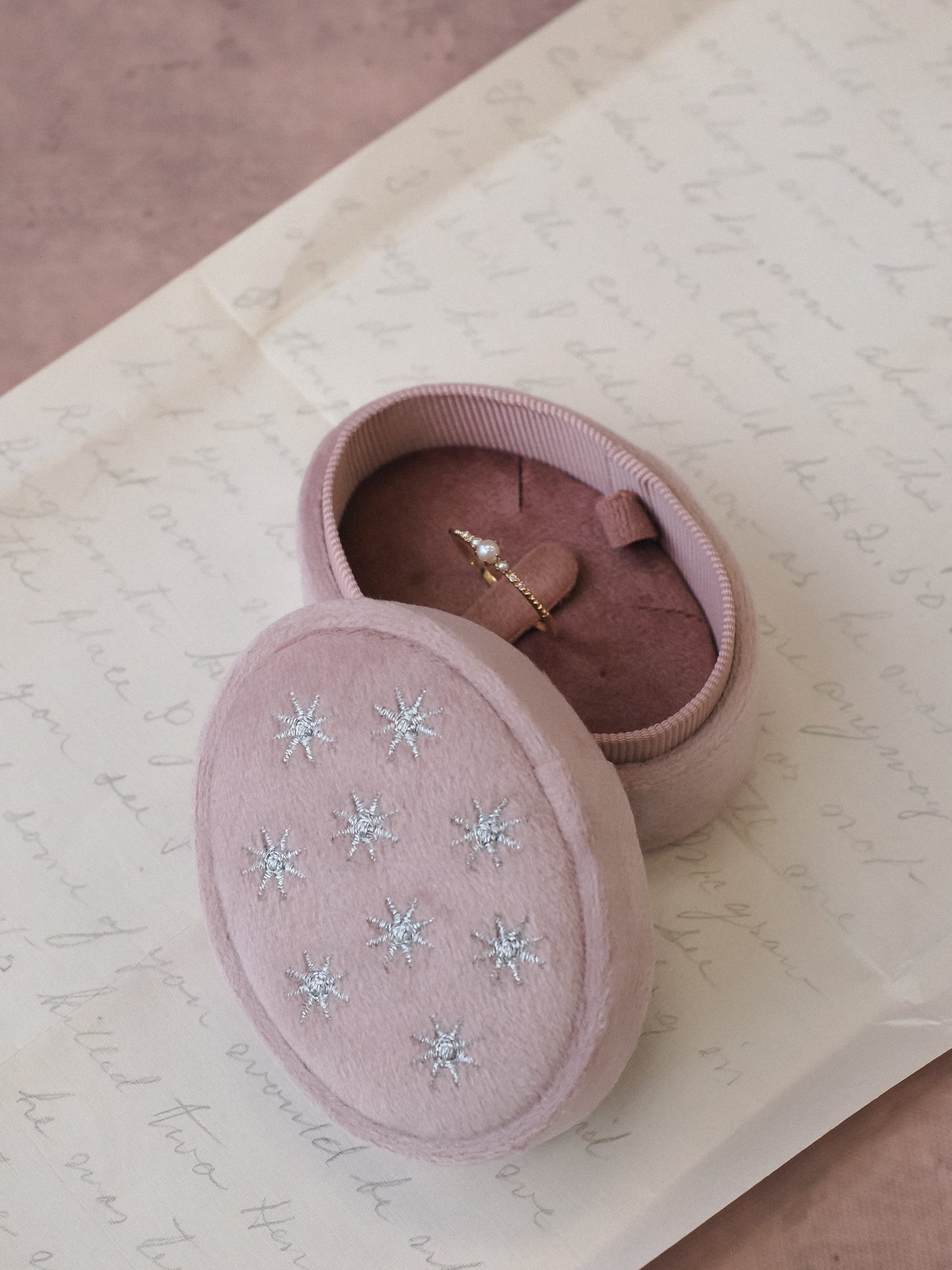 Presented in a luxurious velvet jewelry box embroidered with dazzling stars in metallic threads, provides a romantic and dreamy touch to showcase your jewelry.