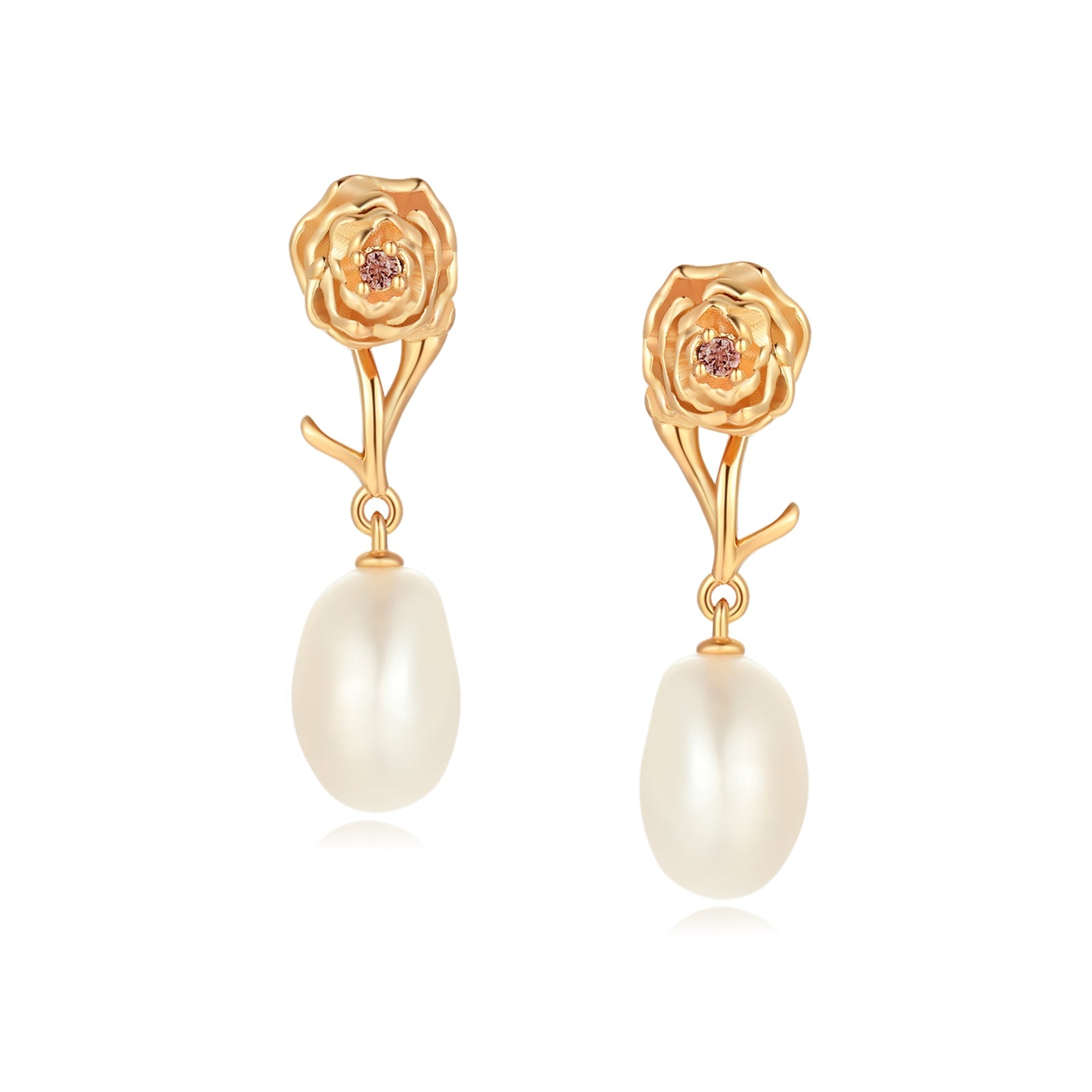 Baroque Pearl Gold Earrings - Carnation
