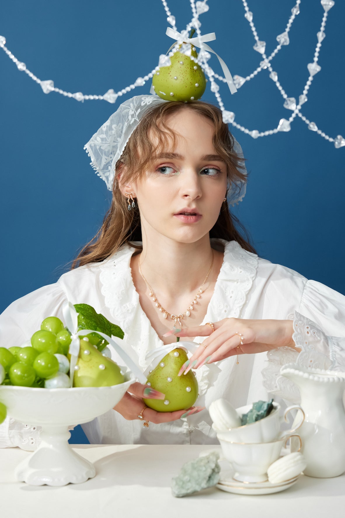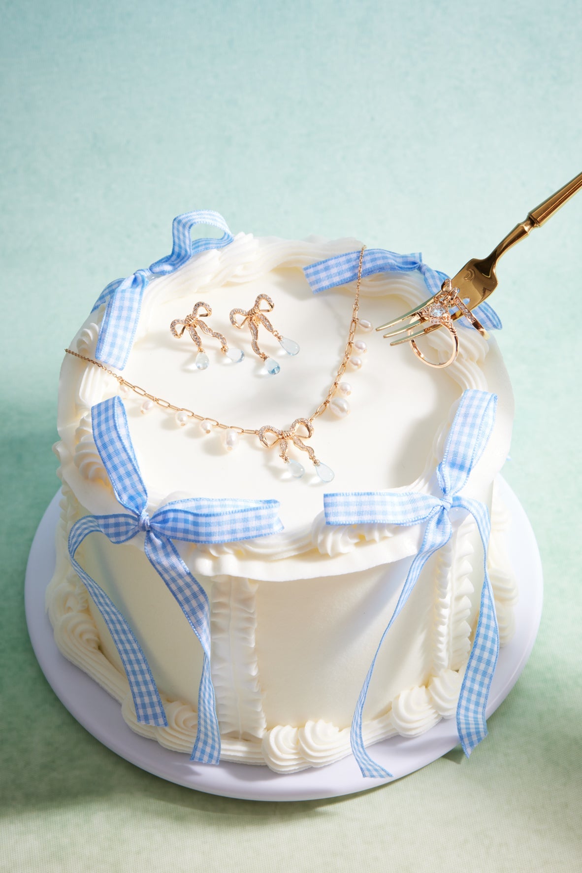 This pair of exquisitely crafted bow earrings beautifully captures the graceful flow of a delicate ribbon. Adorning the glittery ribbon bow are 2 teardrop blue topazes. Each gentle swing of the delicate bows creates a mesmerizing dance of light and shimmer, whispering tales of sophistication and elegance to your ears.