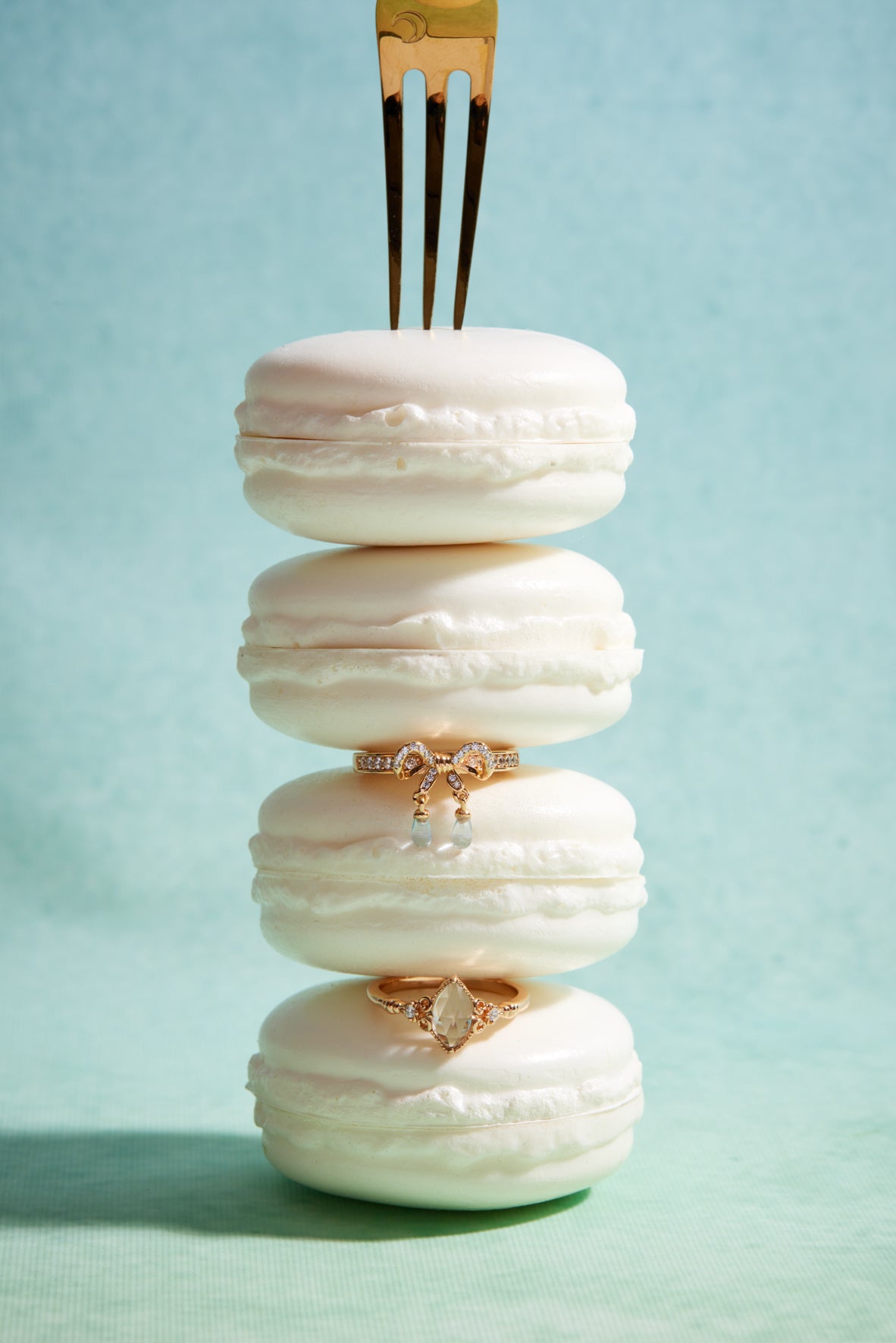 Blue Topaz Gold Bow Dangle Ring - Alice