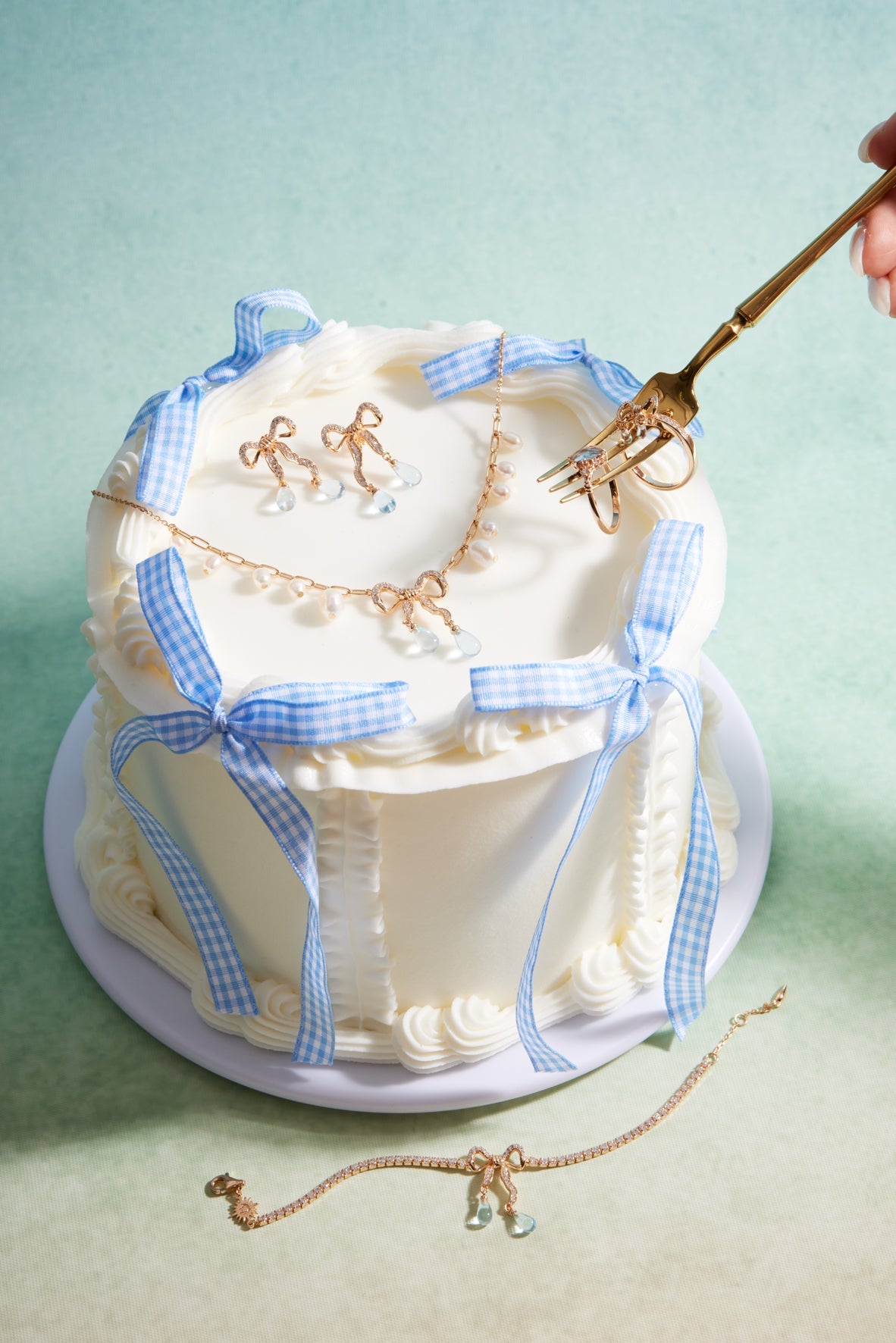 Blue Topaz Gold Bow Tennis Bracelet - Alice