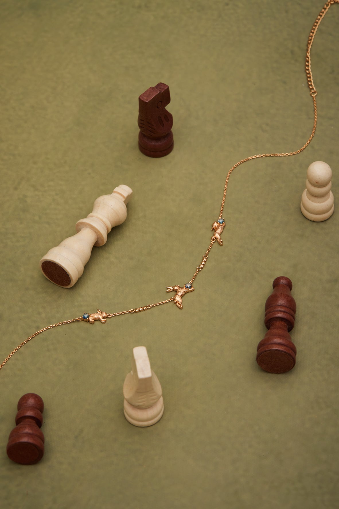 Blue Topaz Gold Leaping Rabbit Choker
