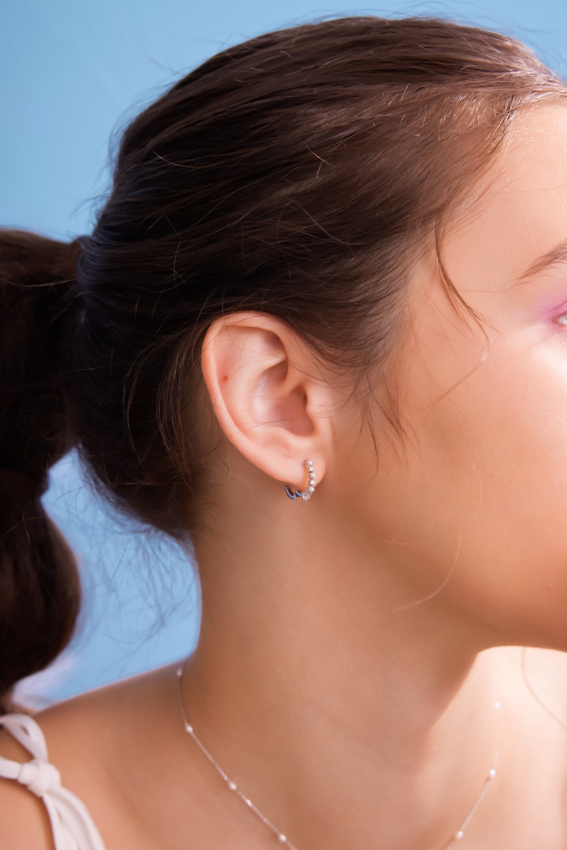 Freshwater Pearl Silver Huggie Hoop Earrings