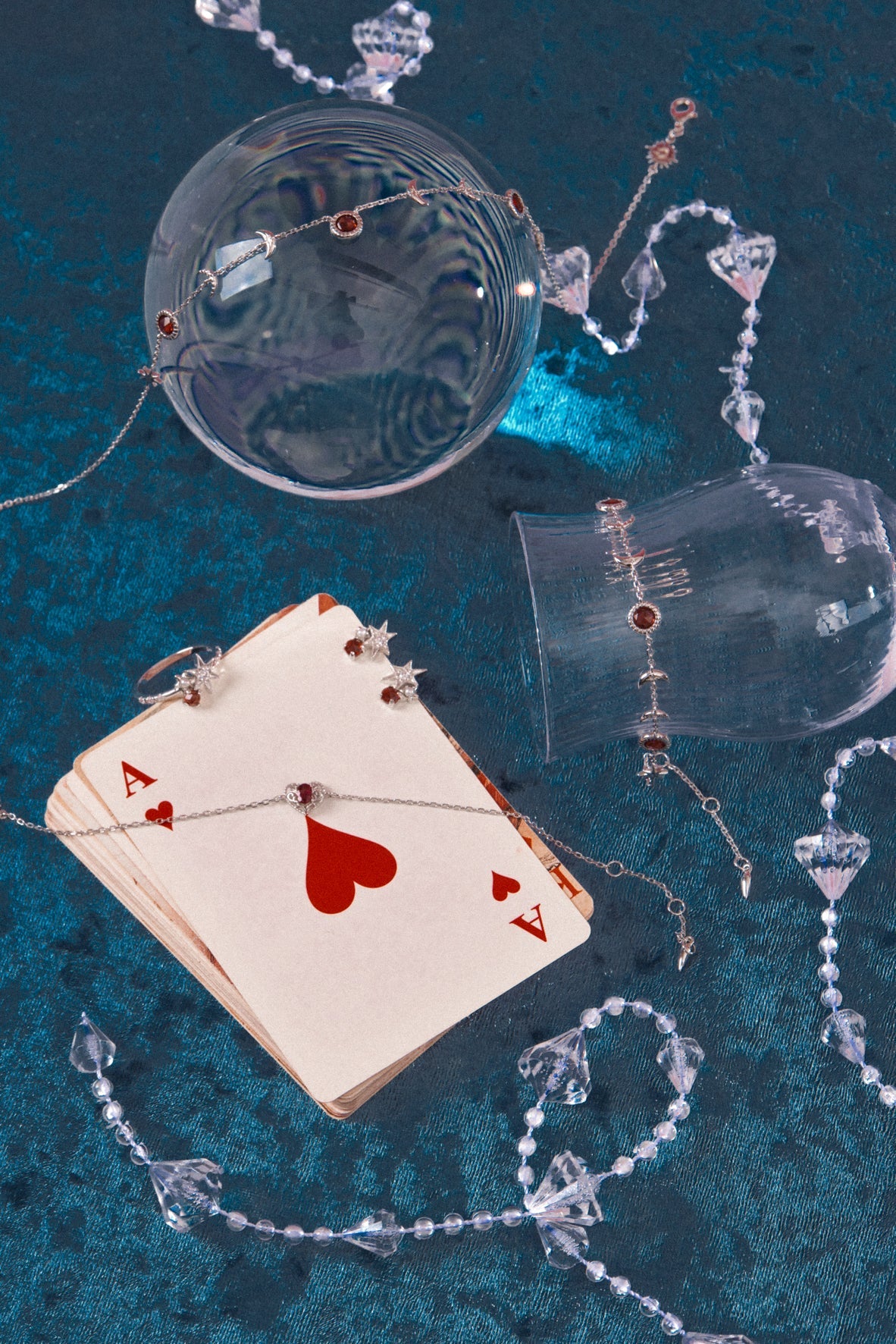 The January birthstone Garnet is often associated with love, passion, and protection. This exquisite bracelet is crafted in a heart-shaped design, evoking a sense of timeless romance. Delicate cut-out filigree flower details dance across its surface, artfully inspired by the regal essence of Queen of Hearts and the serene charm of a blooming flower garden.