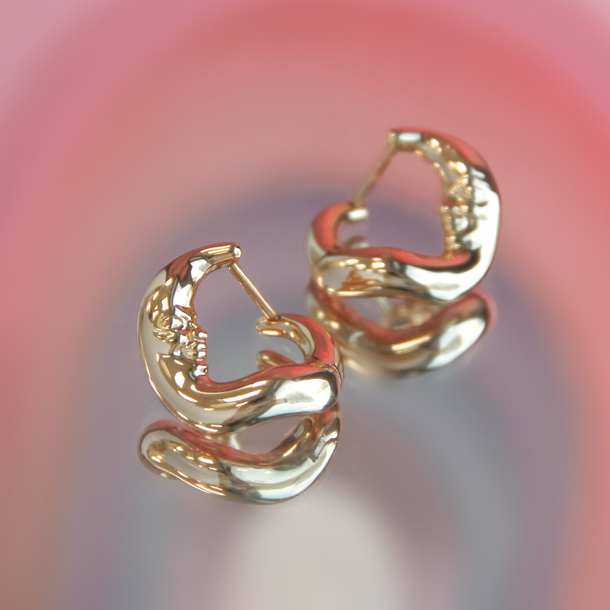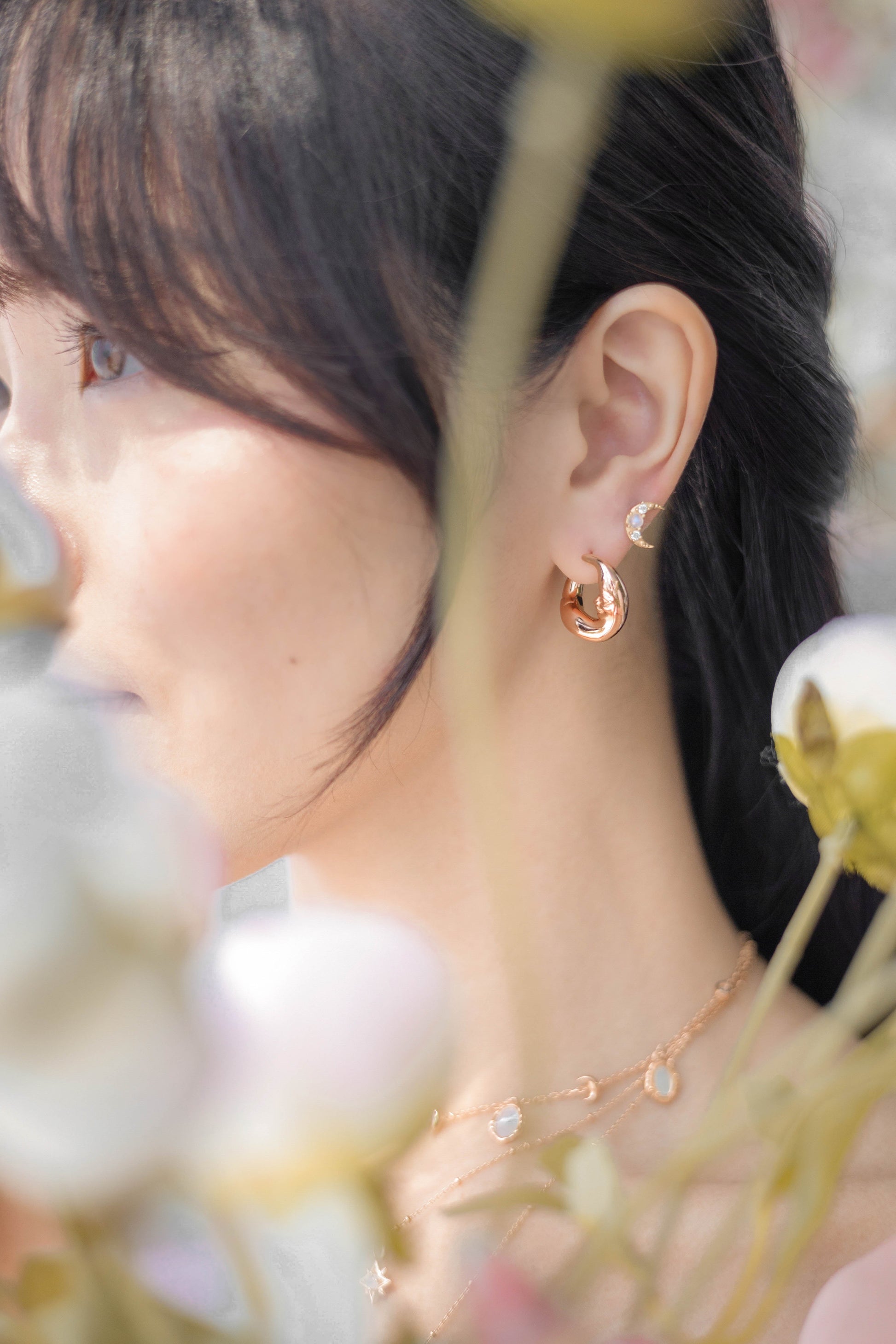 Hand-finished in 18k gold plating. This pair of ‘Embraceâ€?hoop earrings features cheeky crescent moon faces , they will whisper positive affirmations in your ears.