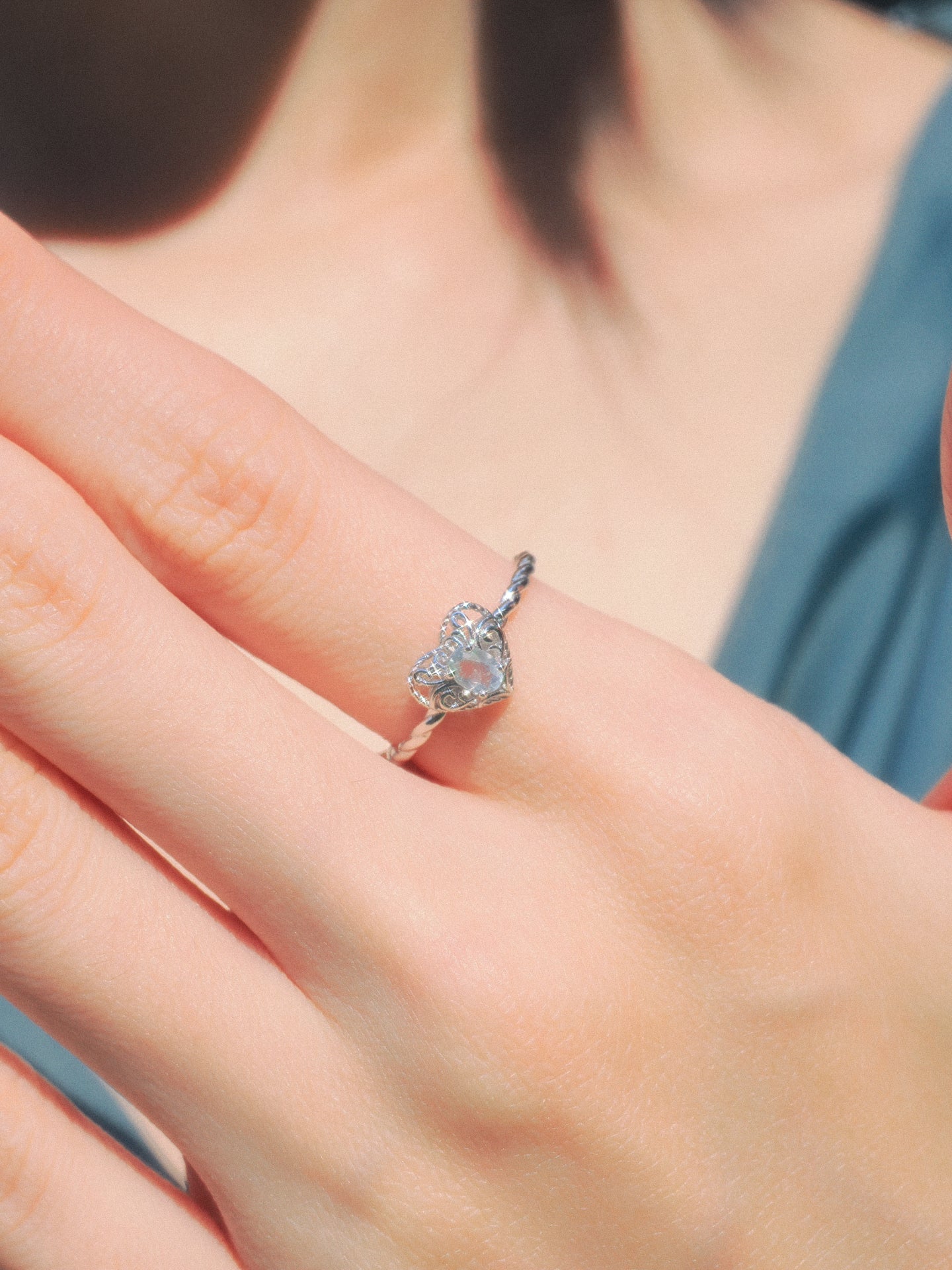 Moonstone Silver Heart Ring - Majesty