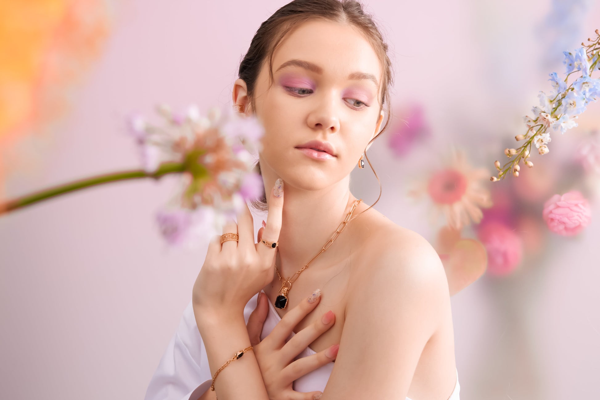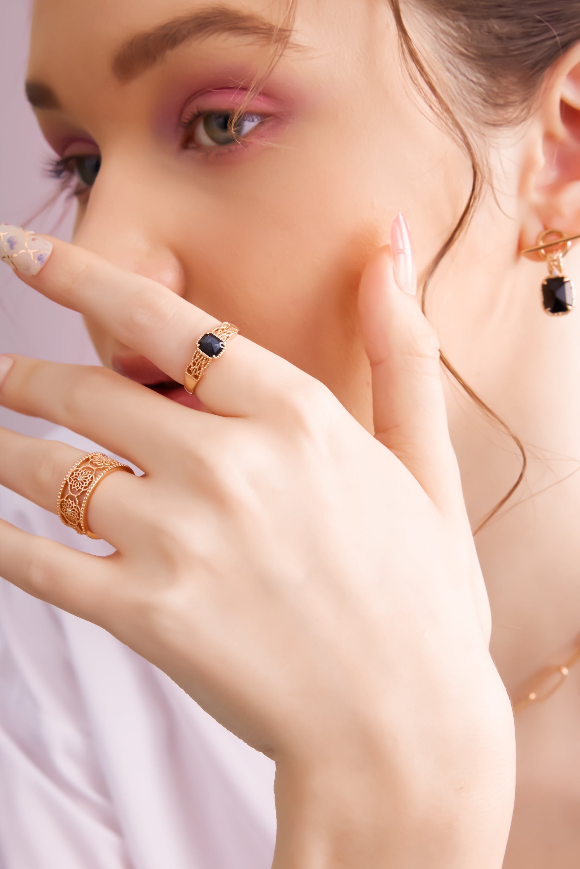 Obsidian Gold Ring - Chrysanthemum