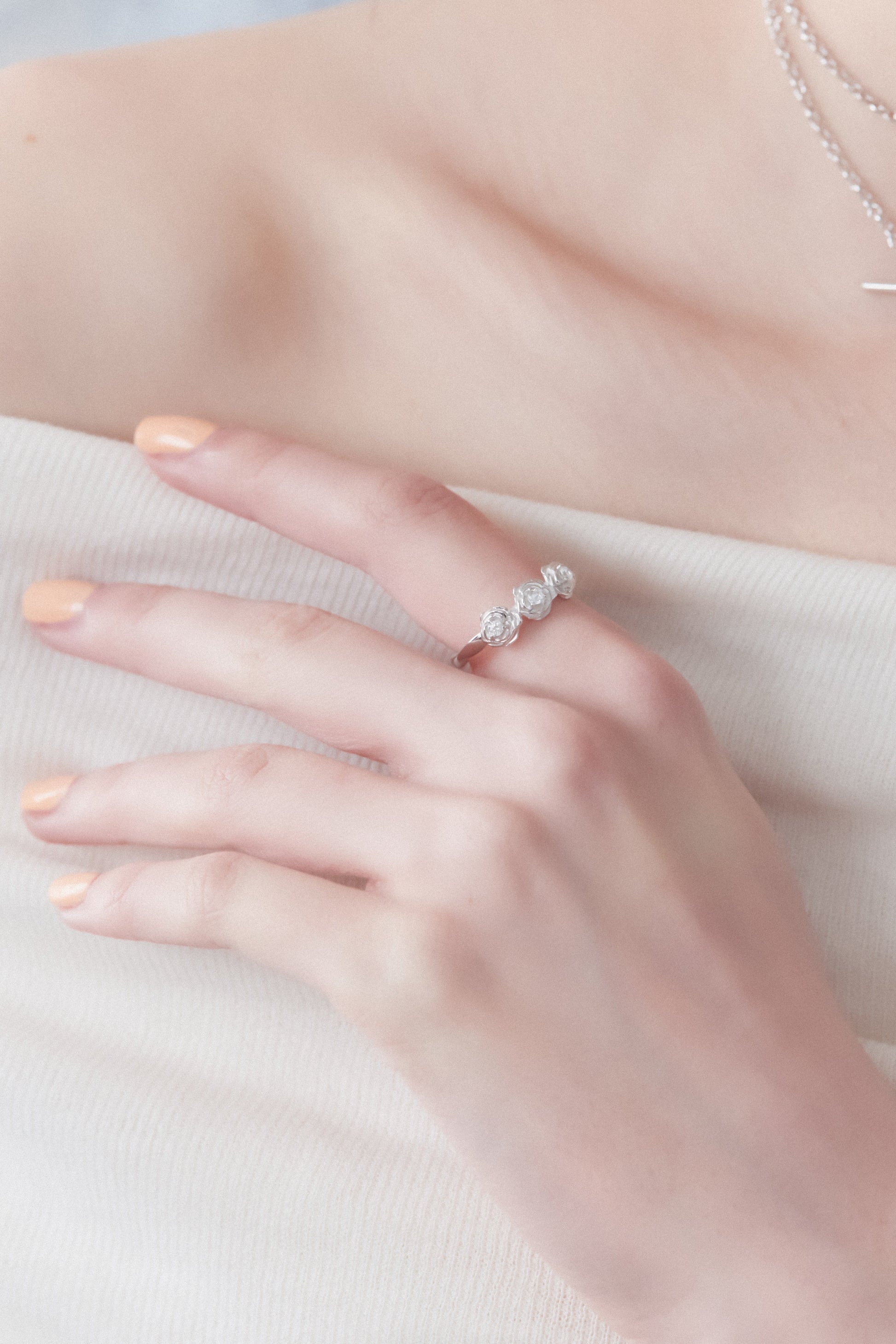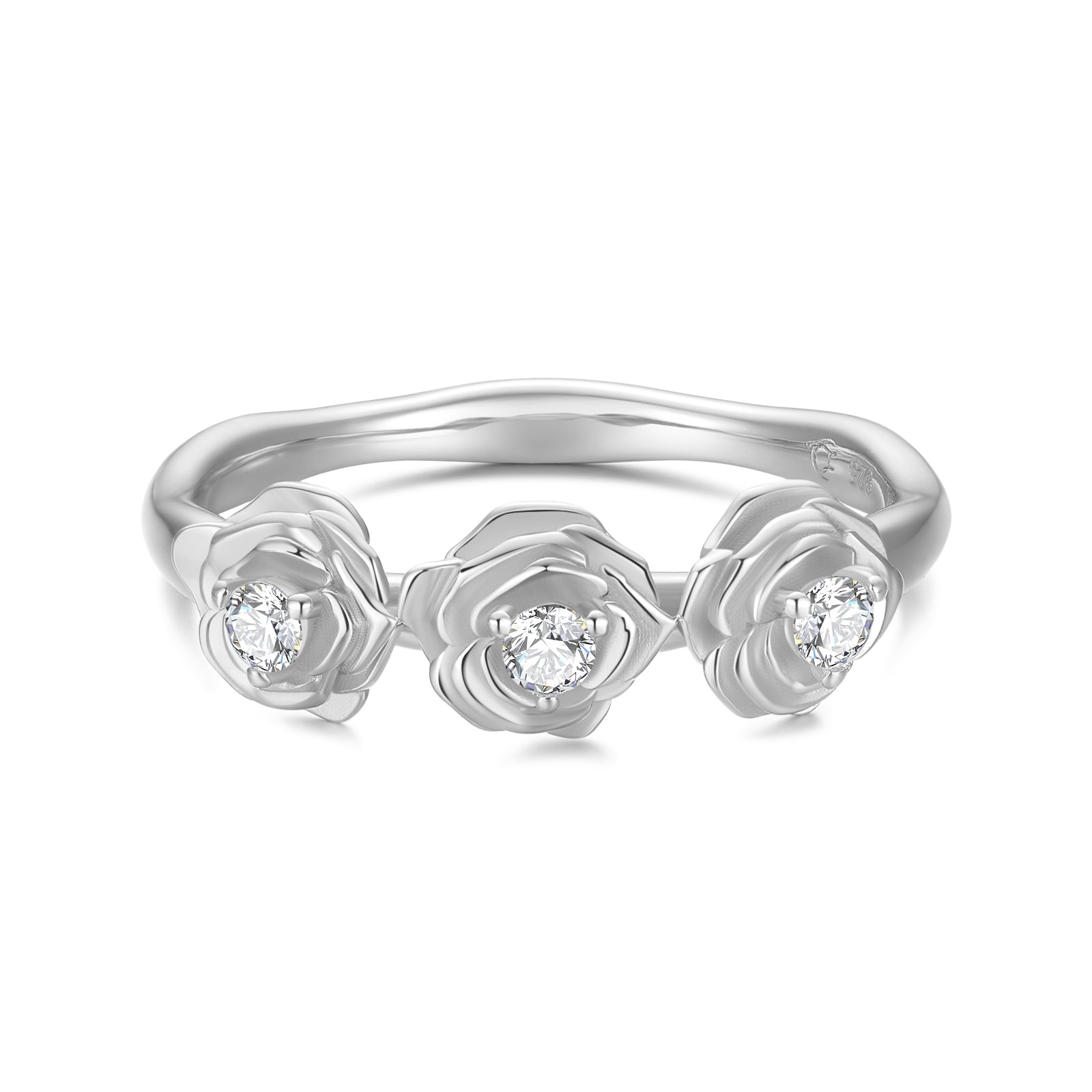 June's birth flower, roses, embody the essence of Venus, the goddess of love, representing beauty, romance, passion, and sincere love. Adorned with glistening CZ stones, this ring captures the stunning and captivating silhouette of three roses. Giving rose jewelry to a beloved is a powerful declaration of deep affection and devotion.